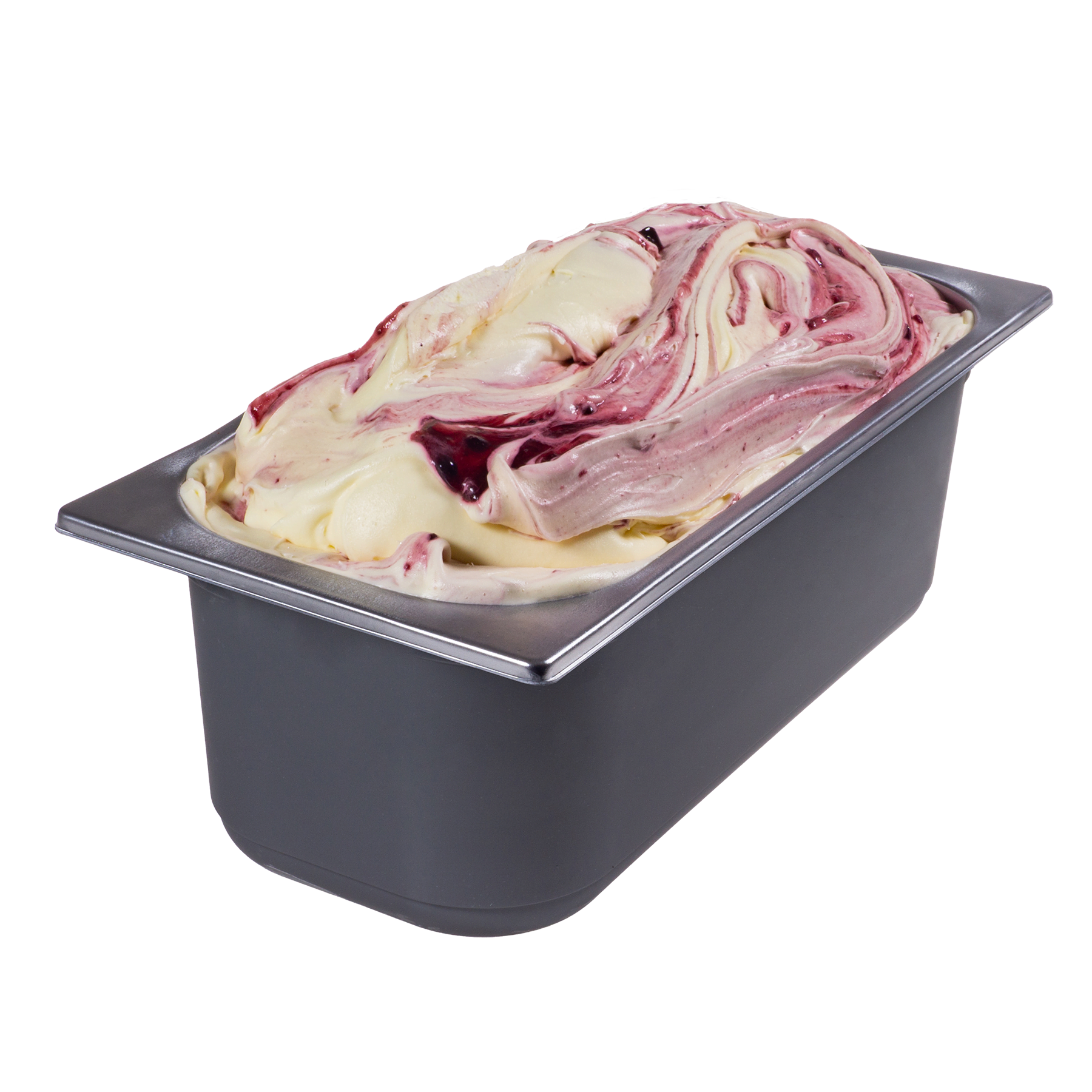 Cheesecake Bosvruchten room ijs voor ijssalons in een metallic-look kunststof vitrine bak van ca. 5,5 liter